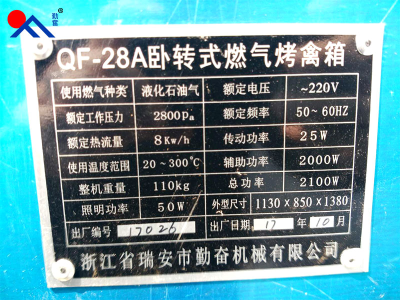Product name: QF - 28 type a horizontal gas electricity rotation roast fowl box voltage: 220 v